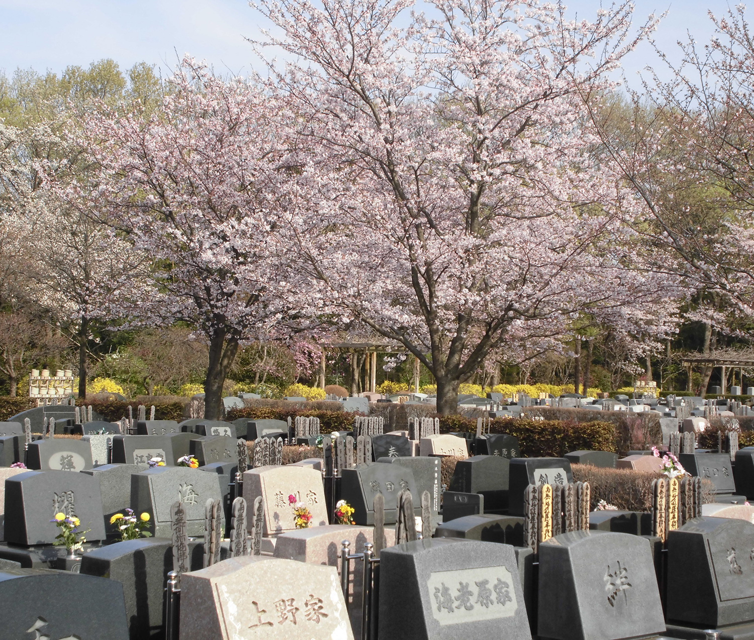北総台地のなだらかな緑の大地を活かして造成し、園内は段差もなくバリアフリー設計となっておりますので、お子様からご年配の方まで安心てお参りする事ができます。また、桜・梅など、2000本以上の植木に囲まれた霊園内。洋型のお墓を中心に統一感あふれる風景は、四季折々に違った表情を楽しませてくれます。